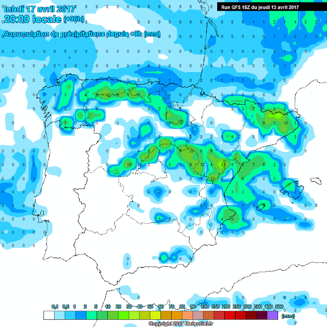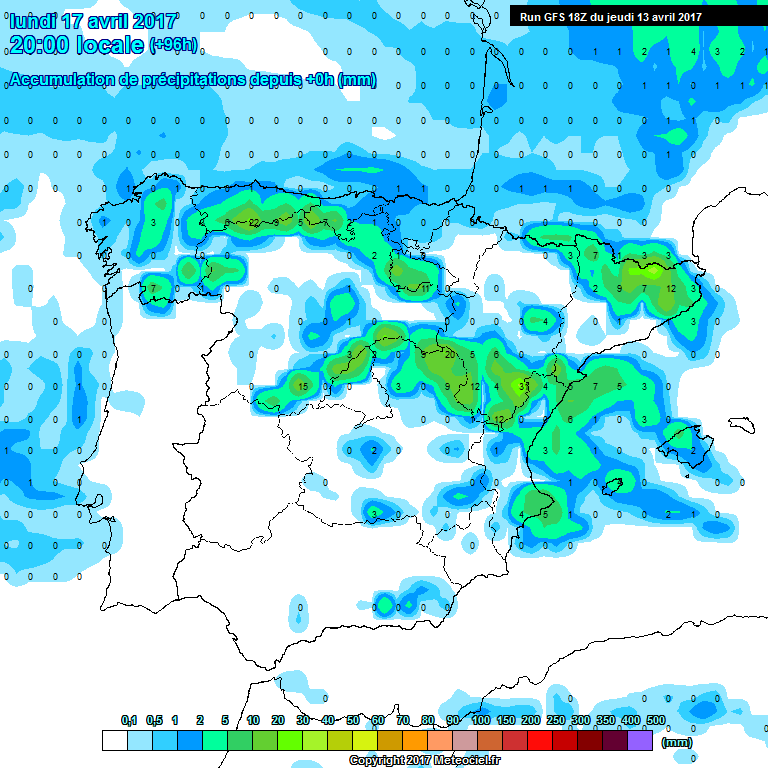 En los modelos globales de precipitación acumulada observamos que se pueden acumular hasta 10 litros en zonas de la Ibérica, probablemente asociadas estas precipitaciones a la aparición de chubascos tormentosos