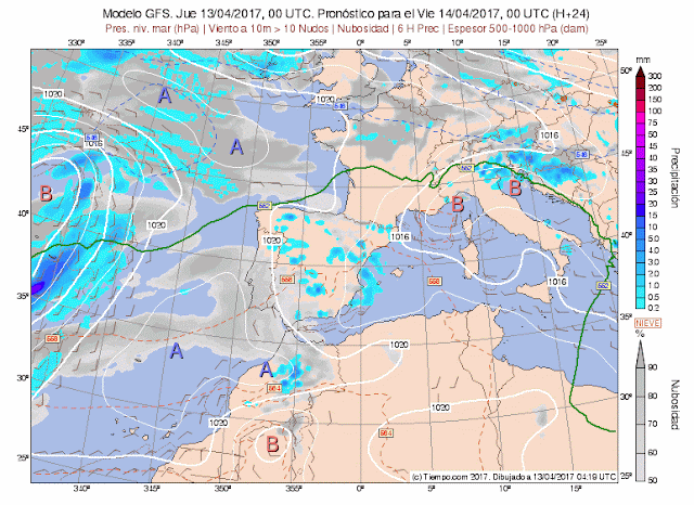 Os dejo aquí una animación con mapas diarios de Meteored. Secuencia cada 6 horas donde se observa, nubosidad, vientos, precipitación..etc