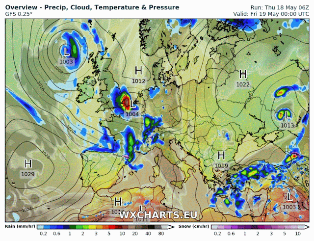 En la animación cada 6 horas de Wxcharts, vemos lo que vamos comentando.
