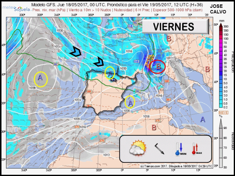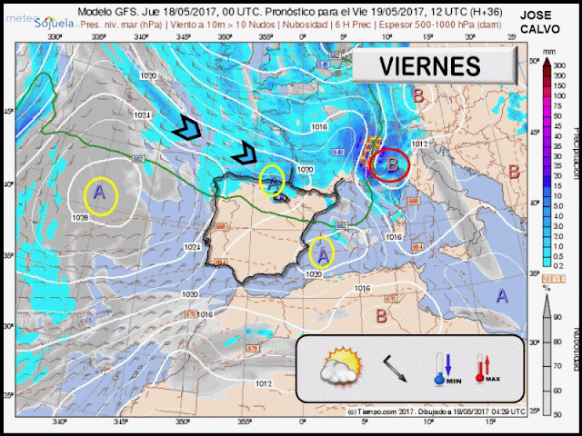 VIERNES 19 DE MAYO : MEJORIA PROGRESIVA. INTERVALOS DE NUBES Y CLAROS CON TENDENCIA A POCO NUBOSO. VIENTOS DEL NNW Y TEMPERATURAS MAS ALTAS.
