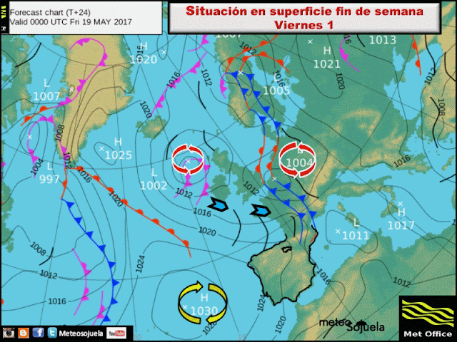Así que en el mapa significamos el tiempo revuelto del viernes……mejorando después….