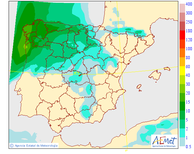 Se esperan precipitaciones en forma de chubascos tormentosos. Serán más probables e intensas en la Iberica pero también pueden afectar al valle.
