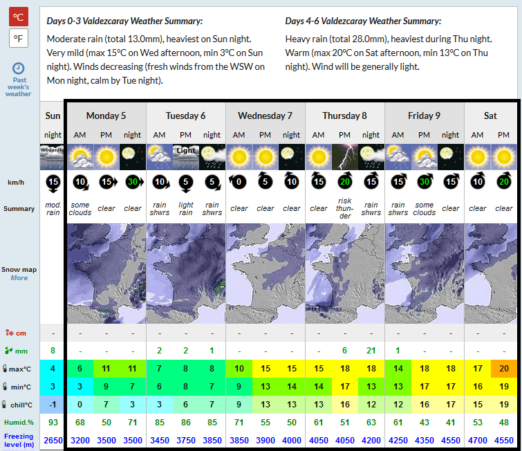 Aquí tenéis las previsiones en montaña teniendo como base la estación de Valdezcaray a 1500m. Como podéis observar esta semana se presenta algo más tranquila