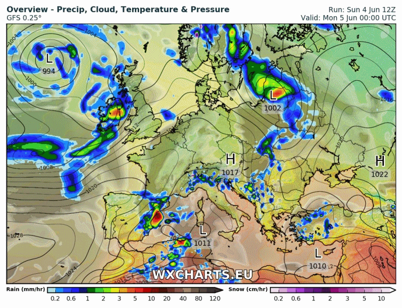 Fijaos en la animación de Wxcharts para esta semana, animación cada 6 horas, lo bien que se puede observar lo que venimos contando.