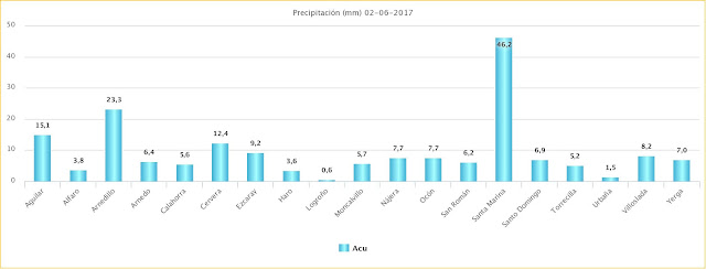..y es que corresponden a las cantidades de precipitación acumuladas en las Estaciones de SOS Rioja, desde el viernes, día que empezó este episodio de lluvias hasta el domingo (cuando escribo esto,…) sin que haya todavía finalizado de llover. Cantidades importantes entre 20 y 60 litros, bien distribuidas, ha llovido en toda la región si bien es cierto que en algunos puntos han sido torrenciales y en forma de granizo como podemos ver en estas imágenes grabadas por Edu en Ajamíl y que nos hacía llegar Sergio Martínez…