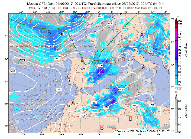 Os dejo aquí una animación con mapas diarios de Meteored. Secuencia cada 6 horas donde se observa, nubosidad, vientos, precipitación..etc