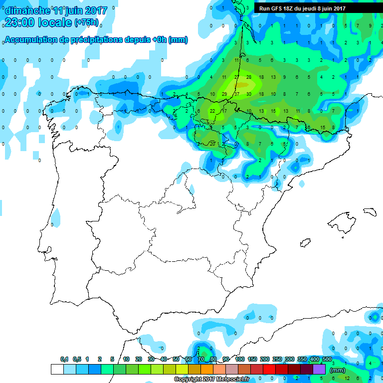 En los modelos globales de precipitación acumulada vemos , acumulados de entorno a los 0-3 litros en el valle y los 15-20litros en la Ibérica. Precipitaciones asociadas a la presencia de tormentas residuales sobre todo en la madrugada del viernes. Aunque parece que ya ha pasado la inestabilidad. Recordad que es un modelo global y que los chubascos