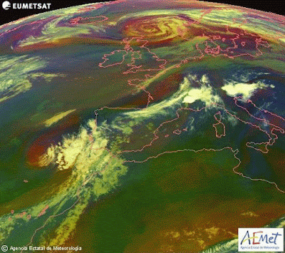 En estos momentos tenemos altas presiones en el Atlántico y bajas presiones en Europa y entre ambas favorecen la llegada de una masa de aire Polar Marítima que esta condicionando la abundante nubosidad, las precipitaciones y las bajas temperaturas.