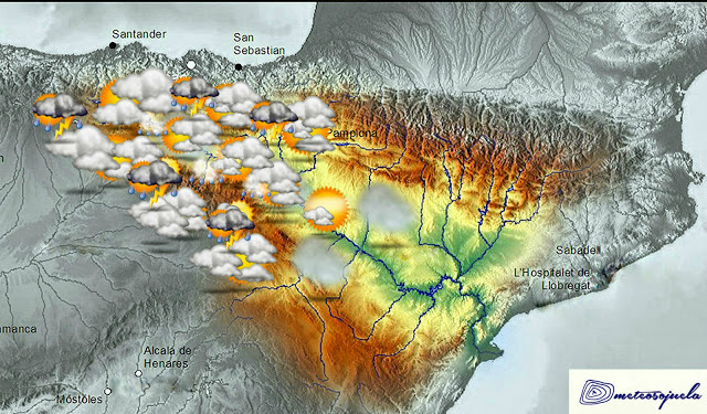 Se pueden producir precipitaciones con la llegada de la línea de inestabilidad hacia la tarde. Serán más probables y abundantes en la Ibérica y algunas de ellas pueden ser en forma de granizo, incluso de nieve. Más dispersas en el valle.