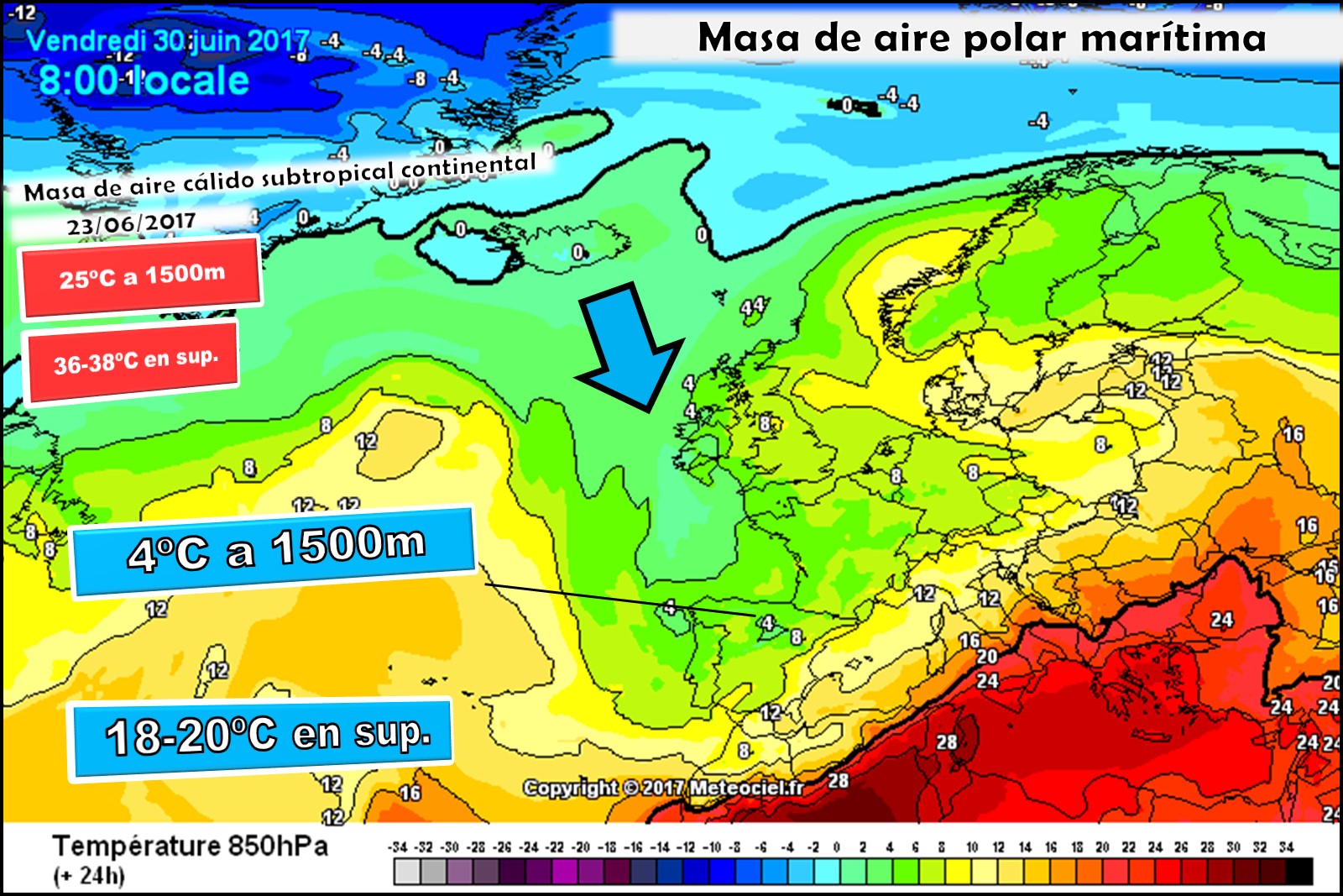 Esperamos para este fin de semana un tiempo más otoñal que veraniego, y es que hemos sustituido la masa de aire cálido subtropical por una masa de aire polar marítima que ha propiciado este acusado descenso de temperaturas