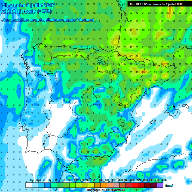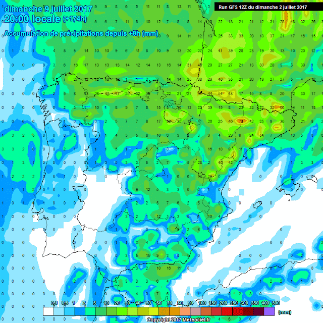 En los modelos globales de precipitación acumulada vemos , como las precipitaciones acumuladas pueden ser abundantes en la Ibérica. Precipitaciones asociadas al paso del aire frío en altura que favorecerá la aparición de tormentas . Recordad que es un modelo global y que los chubascos tormentosos dejan precipitaciones de intensidad y distribucion irregular.