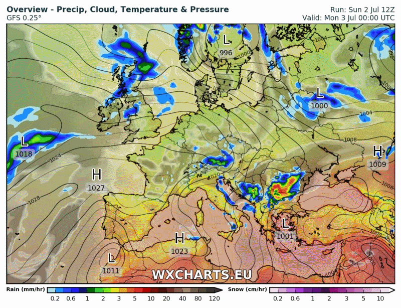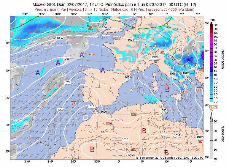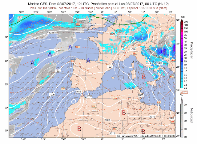 JUEVES 06 DE JULIO: REVUELTO E INESTABLE CON NUBOSIDAD ABUNDANTE Y PRECIPITACIONES. CIERZO MODERADO Y TEMPERATURAS EN DESCENSO