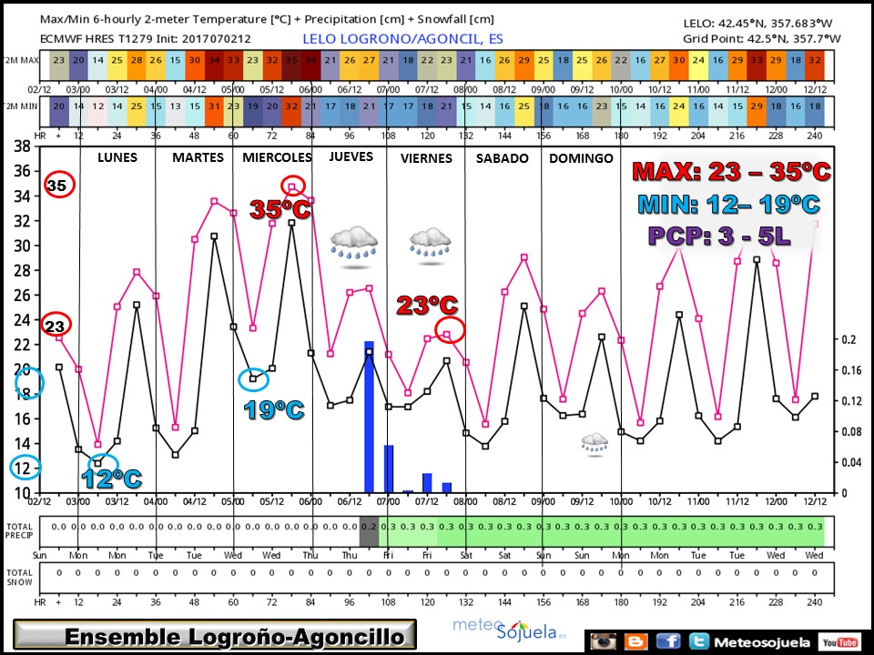 En el Ensemble del aeropuerto de Agoncillo que nos sirve para mirar la tendencia de la semana en nuestra ciudad, observamos