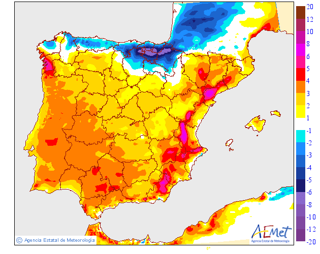 Observamos durante la primera parte de la semana la presencia de ligeras anomalías positivas asociadas a la presencia de aire algo más estable.