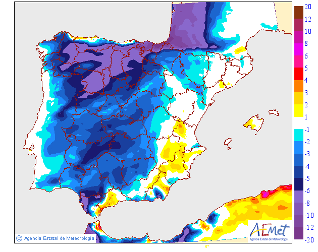 Observamos durante la primera parte de la semana la presencia de ligeras anomalías negativas asociadas a