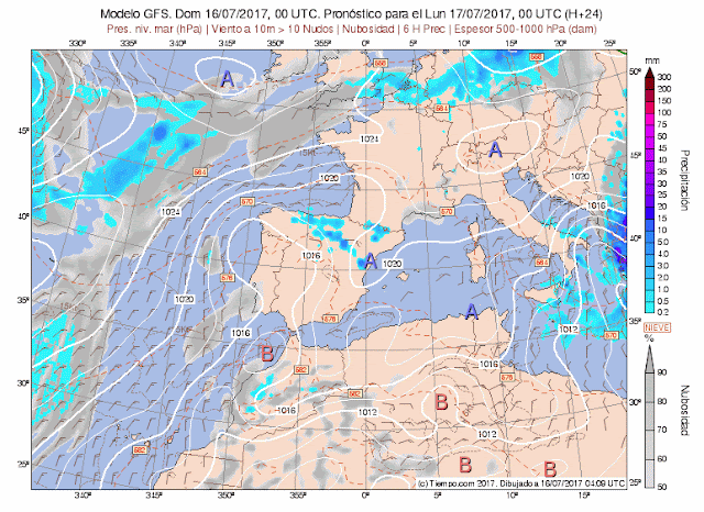 Os dejo aquí una animación con mapas diarios de Meteored. Secuencia cada 6 horas donde se observa, nubosidad, vientos, precipitación..etc