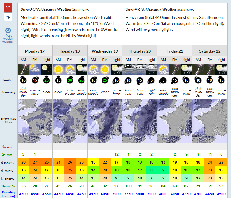 Aquí tenéis las previsiones en montaña teniendo como base la estación de