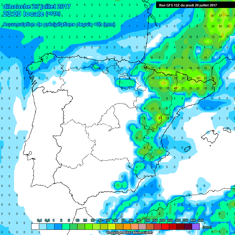 En los modelos globales de precipitación acumulada que no se espera que sean muy eficientes. Las cantidades son casi inapreciables. Se asociarían a las nube retenidas y a algún amago tormentoso.