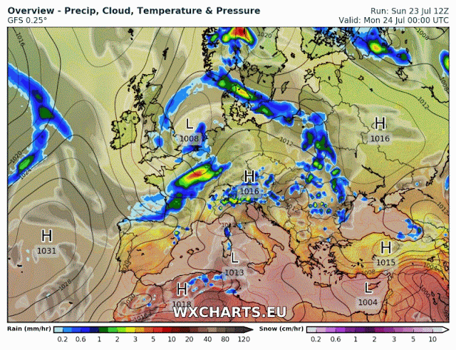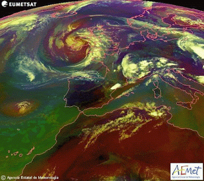 Os dejo aquí una animación con mapas diarios de Meteored. Secuencia cada 6 horas donde se observa, nubosidad, vientos, precipitación..etc