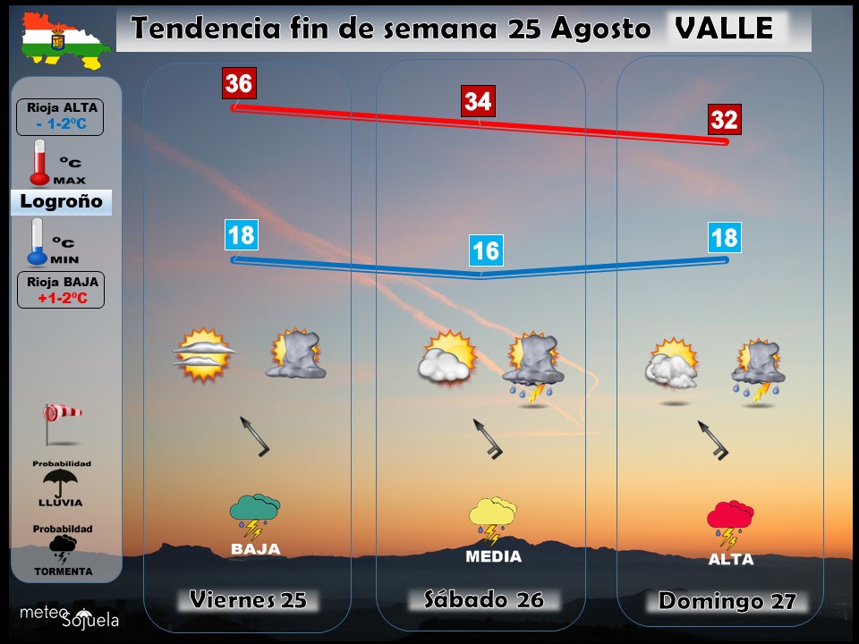 Fin de semana más inestable con bochorno y riesgo de algunas tormentas.