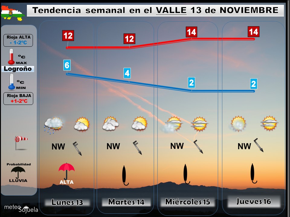 Tras un lunes revuelto y casi invernal, el tiempo se estabiliza. Regresan las altas presiones que dejarán un tiempo tranquilo. Algunas brumas/nieblas matinales darán paso a cielos poco nubosos o despejados. El cierzo que soplará con fuerza los primeros días irá perdiéndo intensidad. Las temperaturas máximas tras su descenso se recuperarán, siendo las mínimas frías […]