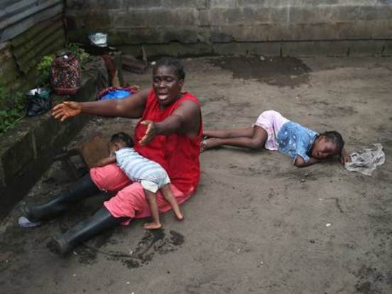 La foto es de una calle de Monrovia (Liberia). Se ve a Beaty y Arthuneh, las hijas de Mekie Nagbe, tiradas y abandonadas en el suelo en un sucio callejón (se intuye maloliente). Mekie ha muerto por el ébola, a los 28 años. Es una de las más de 4.000 personas liquidadas por el virus en estos meses. Estas son las cifras oficiales, pero vete tú a saber cuántas han sido realmente, como para llevar la contabilidad están ahí; han caído como moscas, ante nuestra indiferencia.