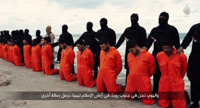 Este vídeo recuerda a otro que también los terroristas del Estado Islámico hicieron público el 16 de febrero en el que decapitan, también con mono naranja, a 21 egipcios, cristianos coptos, también en una playa de Libia.