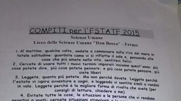 Me viene todo esto a la memoria cuando leo que un profesor italiano se ha hecho famoso en las redes sociales y en los medios de comunicación por sus originales propuestas para las vacaciones. Cesare Catà ha sugerido varias tareas (que, por cierto, tendrían que ser de obligado cumplimiento para todos, no solo para los escolares): recomienda pasear por el mar o el campo y pensar mientras en las cosas que más felices nos hacen. Pone como deber de verano utilizar palabras nuevas porque cuantas más cosas seamos capaces de expresar, más lograremos pensar, y cuanto más pensemos, más libres seremos.