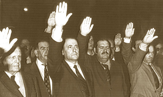Aquel 24 de junio de 1979, festividad de San Juan y domingo por más señas, el partido ultraderechista Fuerza Nueva celebró en Logroño un denominado «acto de afirmación nacional», con su líder Blas Piñar, arropado por dos mil neonazis –franquistas, en realidad– llegados en autocar. Tras el mitin, las calles se poblaron de recalcitrantes cánticos y de banderas con la «gallina» y la esvástica. En Laurel, con la andorga preñada de vino, los gorilas de Piñar pasaron de las palabras a los hechos: blandieron cadenas, rompieron cristales y golpearon a voluntad. Lo que no esperaban es que la gente de a pie, harta de sus bravatas, se uniría para hacerles frente. La «fiesta» acabó con un nutrido grupo de «ultras» refugiado en el hoy extinto cuartel de Artillería.