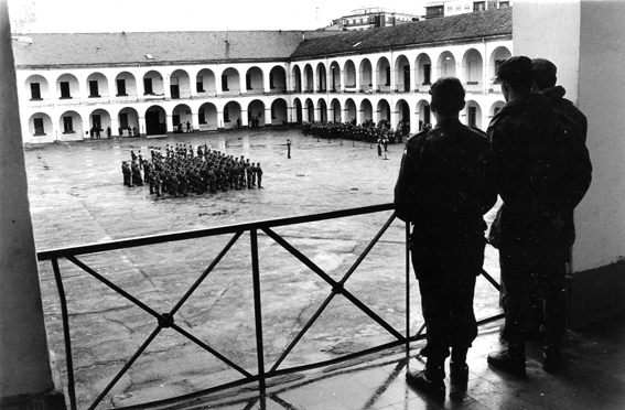 Dice el refrán que «sólo se acuerdan de santa Bárbara cuando truena». Pero en el antiguo cuartel de Artillería de Logroño, sito en la calle General Urrutia, se festejó durante años a la patrona del arma, y con actividades muy amplias. En la imagen, que conserva el Archivo Jerónimo Jiménez, puede contemplarse un acto castrense de preparación para la fiesta de santa Bárbara, a mediados de los años 80.