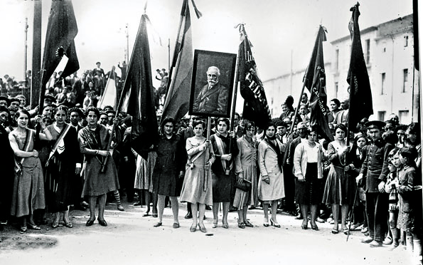 Pasadas las seis y media de la tarde del 14-A, cientos de personas tomaban las calles en una manifestación festiva, con cohetes, banda de música y banderas tricolores.
