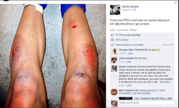 Salvando las distancias, es el mismo caso de las jugadoras a las que se obligará a disputar el próximo Mundial de Canadá en césped artificial por considerarlo discriminatorio con respecto a las competiciones masculinas. La respuesta de la FIFA ha sido la habitual: amenazar a las díscolas con ser expulsadas de sus selecciones. Imaginamos que el bueno de Blatter en el hipotético caso de un Mundial masculino sobre hierba artificial llamaría también al orden a Cristiano ¿Verdad?