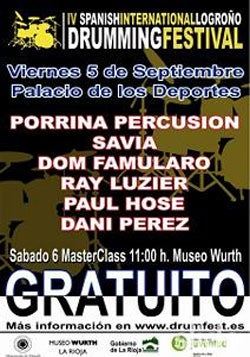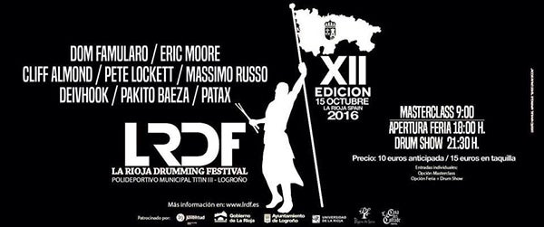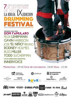 Un año más aterriza en Logroño el festival de batería y percusión más importante de Europa. Una cita de obligada asistencia este próximo fin de semana para todo aquel que disfrute con el latir de una batería en su máxima expresión. Y lo hace de la mano del incombustible Dom Famularo –maestro de ceremonias-, Eric Moore, Cliff Almond, Pete Lockett, Massimo Ruso, Deivhook, Pakito Baeza y el grupo Patax.