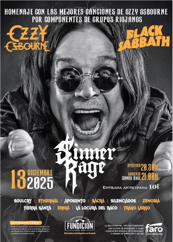 El próximo sábado 13 de diciembre tendrá lugar en la sala Fundición de Logroño el homenaje musical a la figura del recientemente fallecido Ozzy Osbourne, a cargo de un nutrido grupo de músicos riojanos integrantes de bandas como Aposento, Silenciados, Tierra Santa, Zenobia, Ernia, Ethernal, Soulcry, Sacra, Trago Largo y La locura de Baco. Manolo [...]