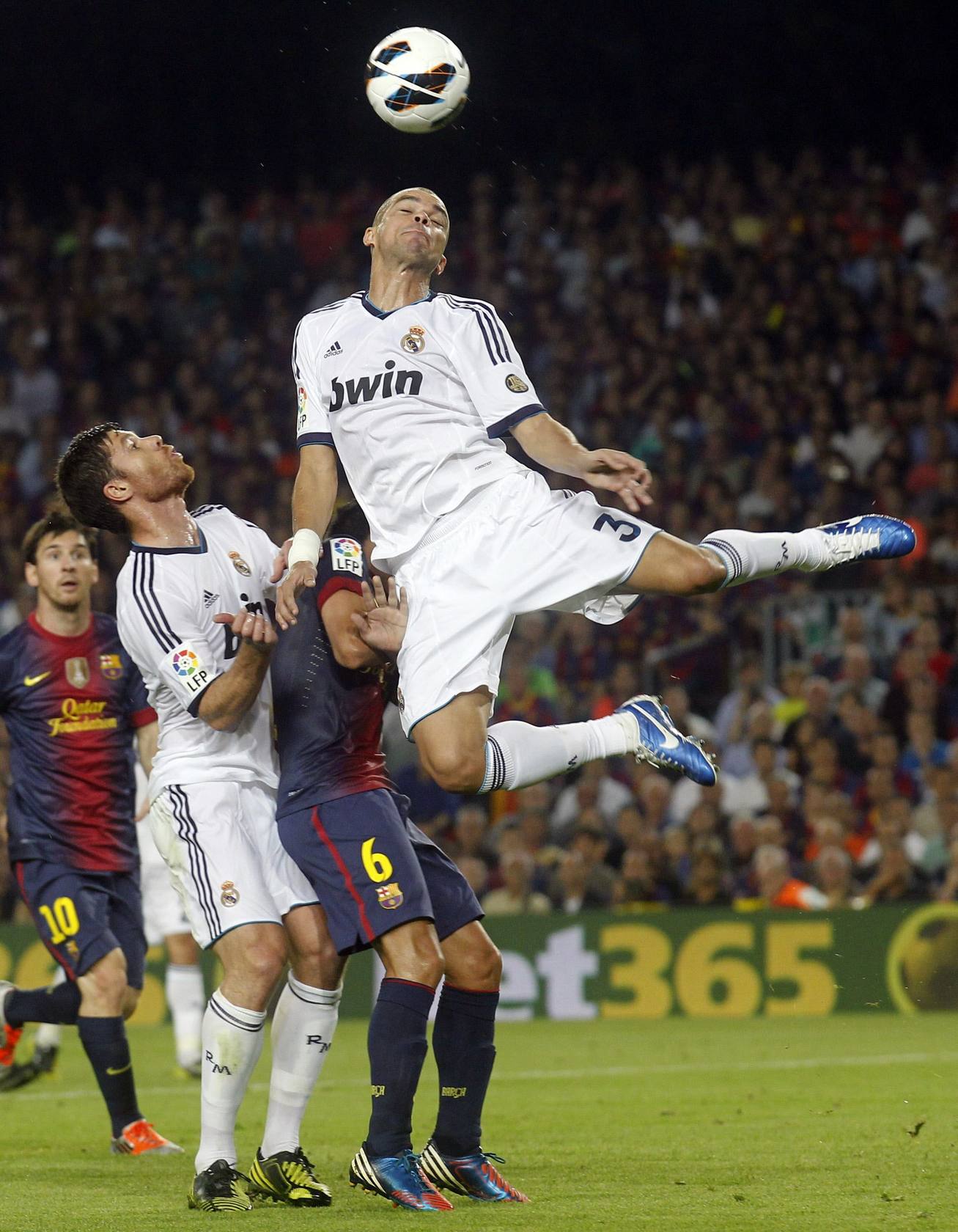 5-Pepe debería centrarse en el fútbol y olvidarse de los demás. Forma junto a Ramos una de las mejores parejas de centrales del mundo, pero debería poner el foco en la pelota. Su equipo encajó el tanto del empate por su obsesión de buscar al rival y la falta cuando debía despejar la bola. Messi asistió a ello y se aprovechó del error. Al acabar el partido completó su despropósito al acusar a Iniesta de teatrero, lo mismo que durante el partido hizo con Pedro. Al menos ya sabe que no debe disculparse leyendo un telepronter. Eso sería estropearlo aún más.