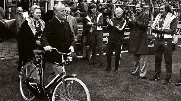 Foto: AFC AJAX / Kovacs, junto a su inseparable bicicleta, fue despedido en loor de multitud en su último partido en De Meer