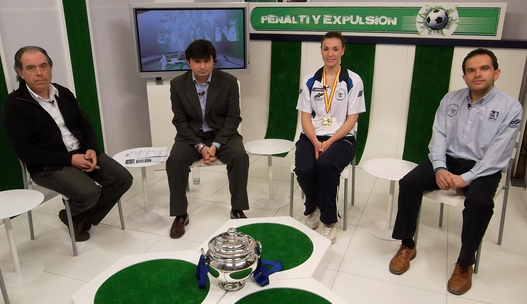 El programa Penalti y expulsión de TVR, que se emite los lunes a partir de las 21.30 horas y conduce Chema Martínez Glera, volvió a tener al voleibol como tema protagonista de esta semana. Junto a él estuvieron como invitados el presidente del Club Voleibol Haro Ismael Merino, el entrenador del Nuchar Eurochamp Murillo Carlos Arratia y la jugadora del Haro Rioja Voley María Ángeles Martín. Los tres hablaron sobre la reciente Copa de la Reina y la victoria en la misma del Haro, con el trofeo presente. Para poder ver el programa, pincha AQUÍ [bloque 3, 12/03/2012].